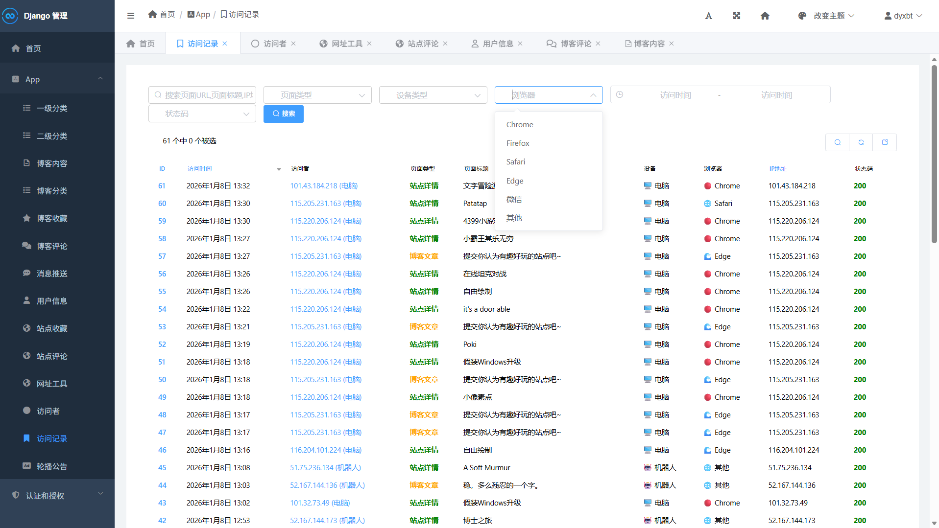 为了解答这些疑问,我决定在 Django 项目中实现一套完整的访客追踪系统,将访问数据可视化地呈现在后台。经过反复调试与优化,这个功能终于成功上线!现在,就让我与你分享这段充满挑战与成就感的开发历程。
